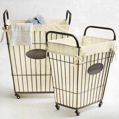 Domestic Science: Wire Laundry Basket from Pottery Barn ... from www.remodelista.com Antique farmhouse has farmhouse decor and gifts with vintage style: Smart and simple design which allows the vintage wire laundry basket and hamper to collapse when not in use. Ruffled hamper liner , french wire hamper liner , grain sack basket liner , farmhouse decor , laundry room decor. Laundry baskets made from cloth are becoming more and more popular, especially baskets that are sturdy and hold their shape. Shop for wire laundry baskets online at target. Two gorgeous wire laundry room baskets with casters under a cute shelf, in the laundry staging area (andrew named this, obviously) in the hallway the thin wire on this basket speaks to me… can you hear it? The ones i was going to purchase were only about 300 dollars total. Won't use wayfair again if they leave products on door steps to be taken by anyone walking by.